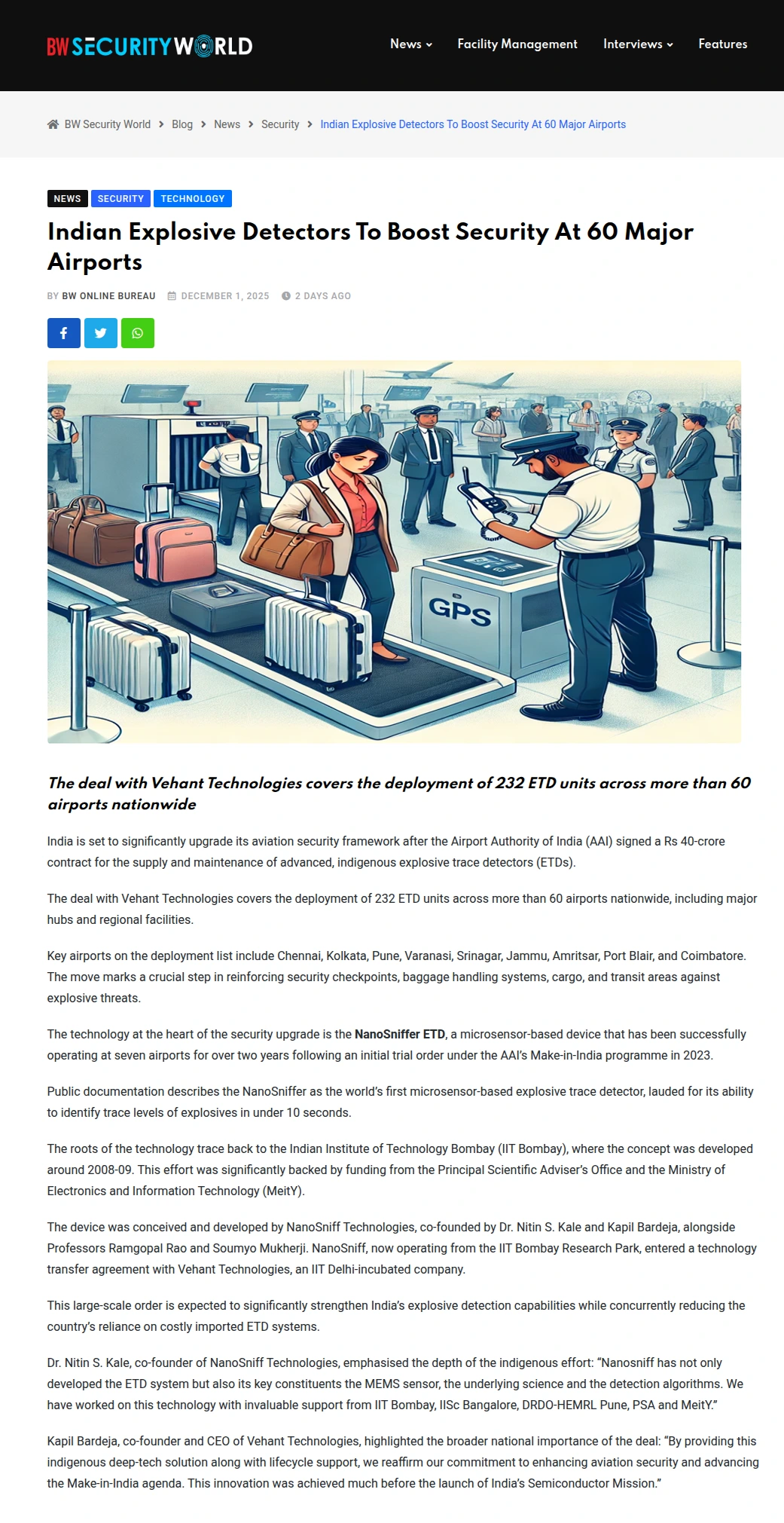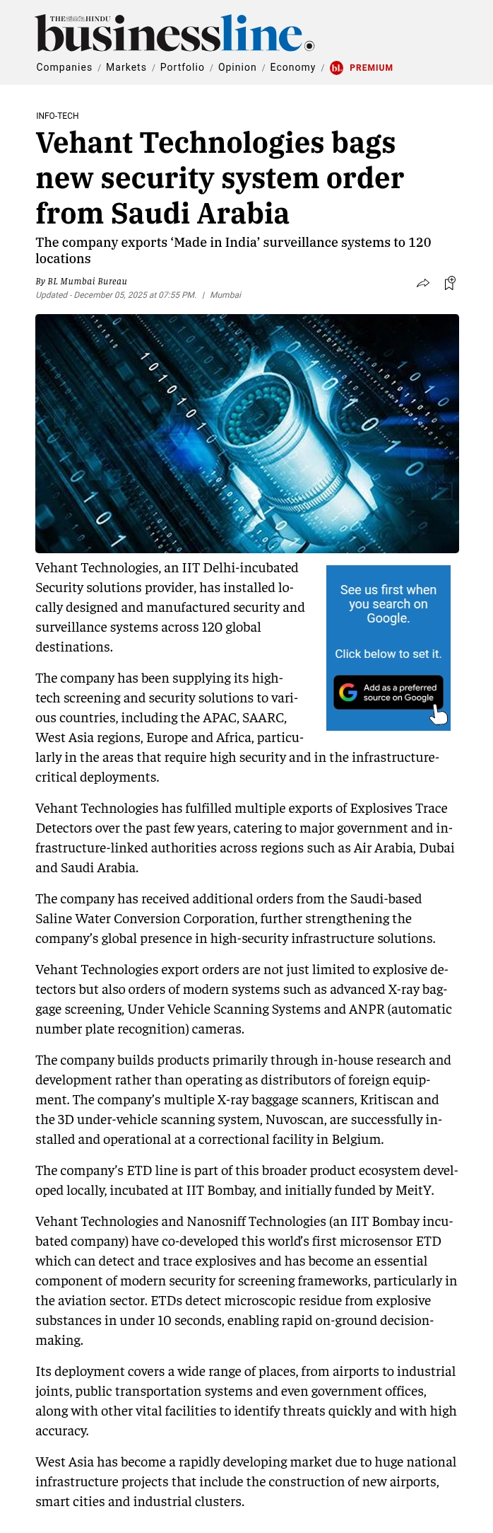 Vehant Technologies Exporting ‘Make in India’ Explosive Trace...